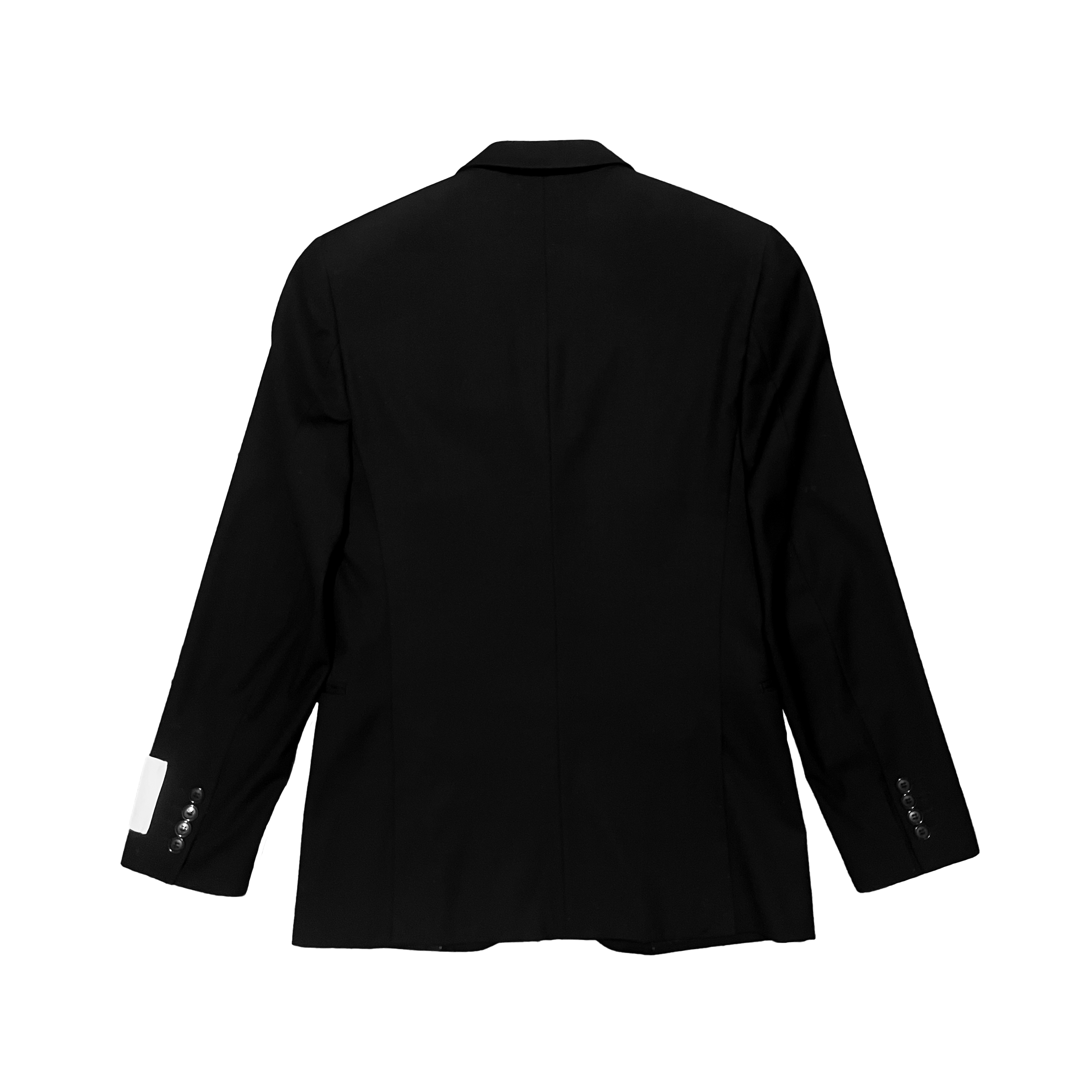 Blazer noir avec lanière en nylon boutonnée et étiquette signature sur la manche.