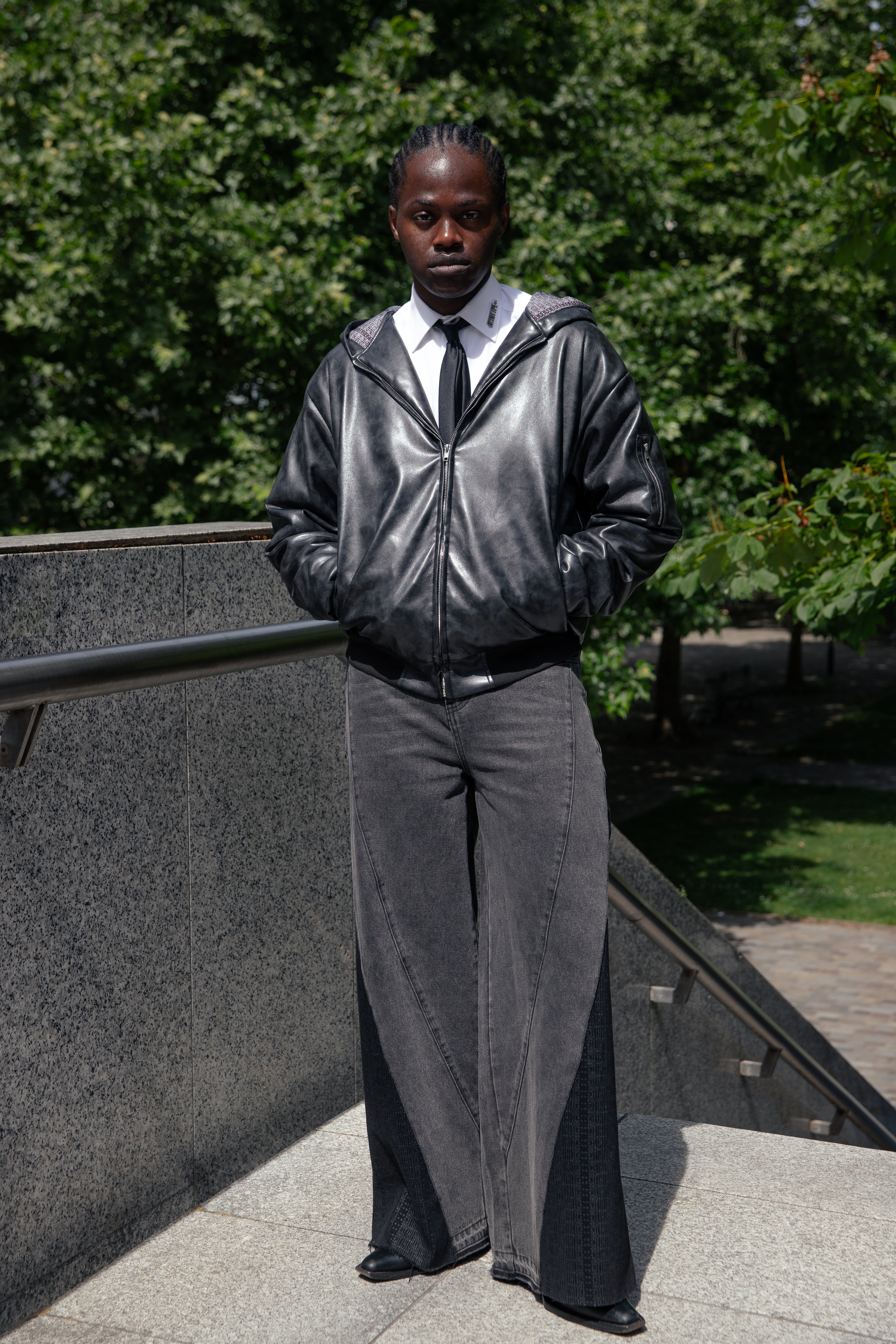 Pour son retour sous un nouveau nom, Adrian puise son inspiration dans le célèbre film "I, Robot" d'Alex Proyas (2004), qui dépeint un monde futuriste où les robots assistent l'humanité. En mêlant des couleurs monochromes (gris, noir et blanc), l'utilisation de matières audacieuses, la réinterprétation des coupes conventionnelles et l'intégration de la mascotte UVA, la marque exprime sa vision unique de la mode influencée par cet univers cinématographique.